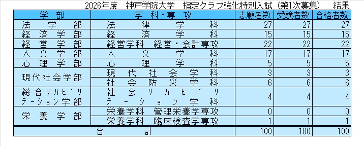 入試結果2026年度指定クラブ強化特別入試(第1次募集)