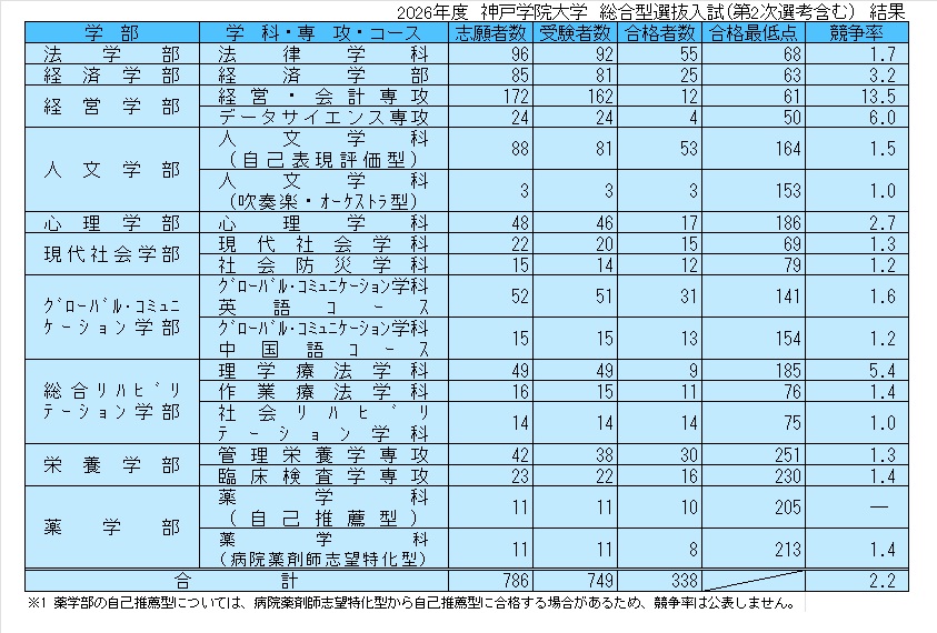 入試結果2026年度総合型選抜入試(第2次選考含む)