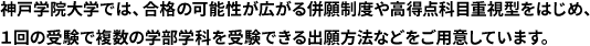 | 対象学部 | 法学部、経済学部、経営学部、人文学部、心理学部、グローバル・コミュニケーション学部(英語コース、中国語コース)、総合リハビリテーション学部、栄養学部、薬学部 |